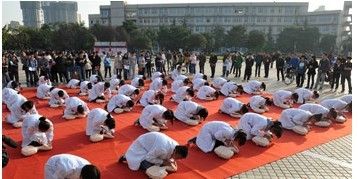普及活动开始前,50名医学志愿者举起右手,高声宣读了医学生誓词:“健康所系,性命相托……”,“尊重生命”的庄严气氛弥漫会场,吸引了众多西南石油大学的学生驻足,并积极参与。医学生志愿者在赖雁教授引导下,演示了心肺复苏的整个过程,西南石油大学的同学跪在模拟人体旁,认真地学习起急救技术。